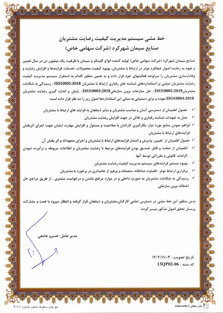 خط مشی سیستم مدیریت کیفیت رضایت مشتریان