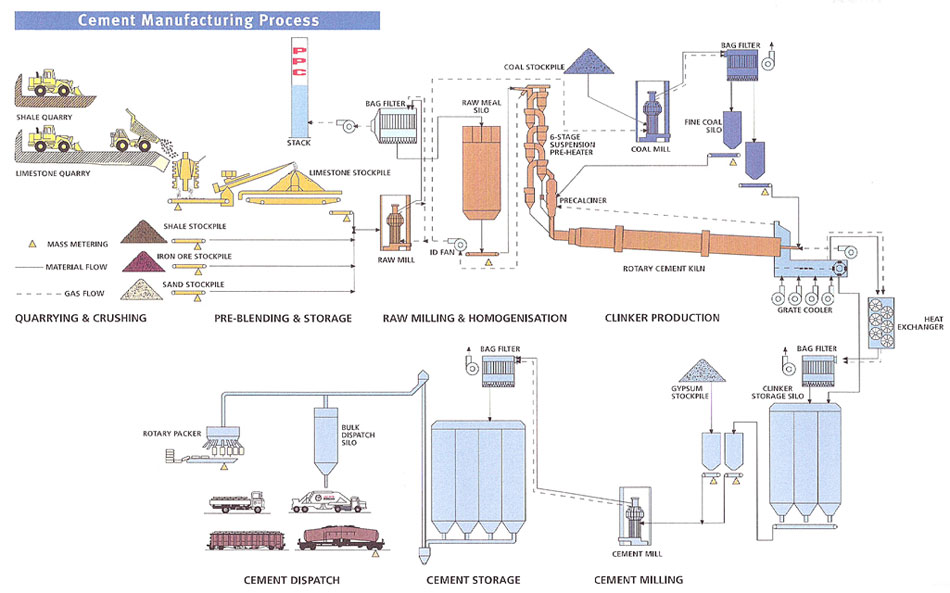 کلینکر خروجی از کوره پس از خنک شدن، همراه با مقدار مشخصی سنگ گچ در آسیاب‌های سیمان پودر شده و به سیمان تبدیل می‌شود.